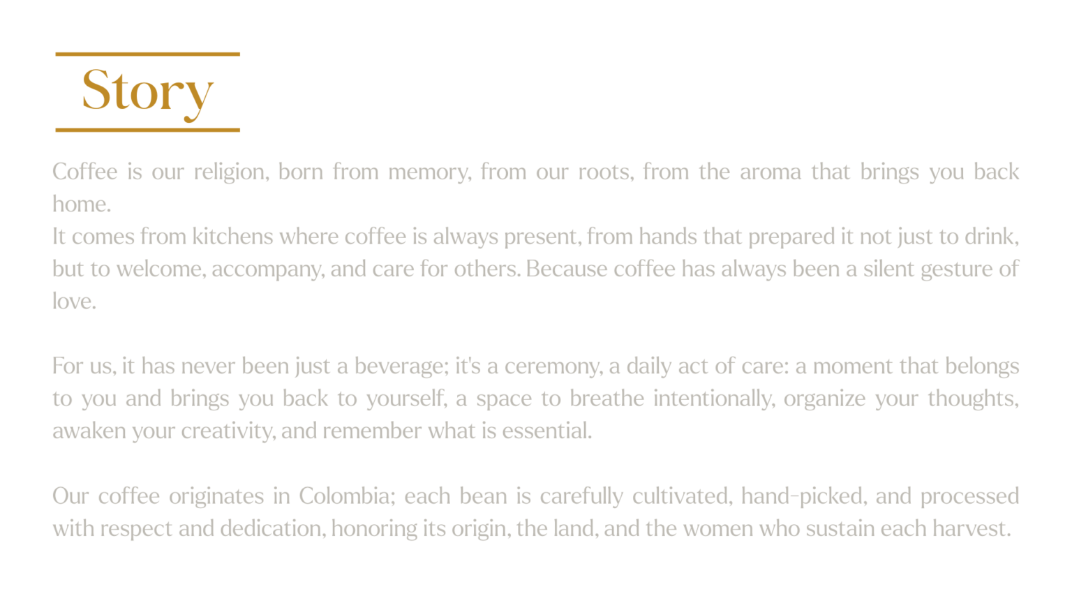 We work with Colombian producers who respect the land and the traditions behind each harvest, creating specialty coffee meant to be enjoyed slowly and intentionally.